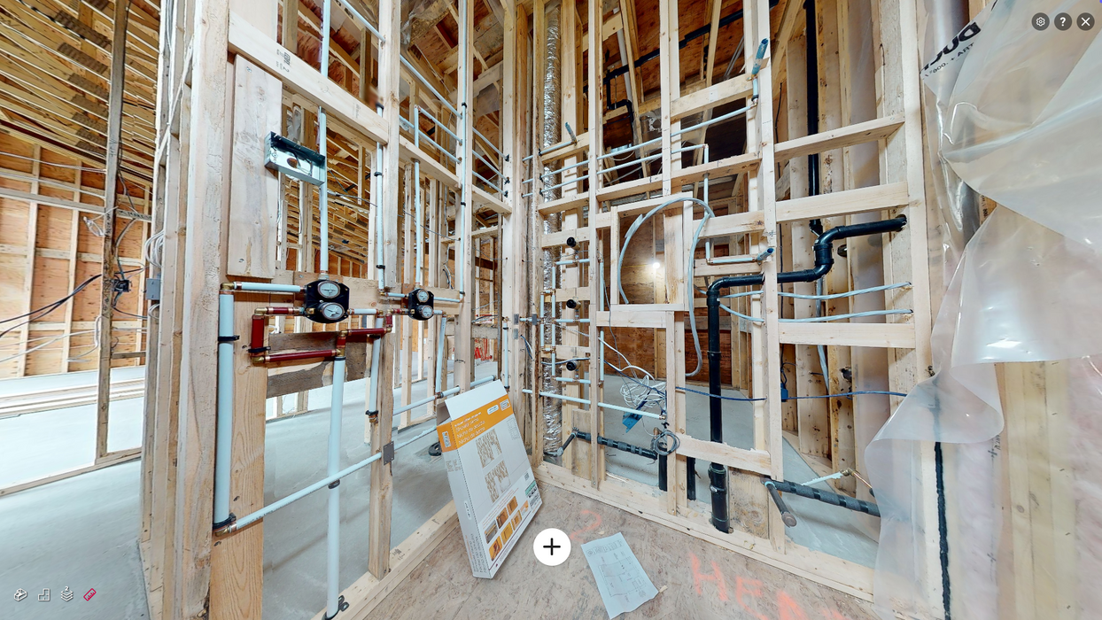 Take the guesswork out of your builds by documenting key stages of the project. By scanning the site at the rough-in stage, before the plaster goes up, you create a digital record of that phase. This gives you a virtual walkthrough of the space, where you can easily reference plumbing, electrical, HVAC, and framing details, and measure with millimeter precision behind the plaster.
